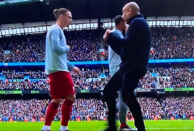 Ο Πεπ Γκουαρντιόλα πανηγύρισε, έξαλλα, μέσα στο πρόσωπο του Κώστα Τσιμίκα, ο οποίος περνούσε, εκείνη τη στιγμή, μπροστά από τον Καταλανό τεχνικό.