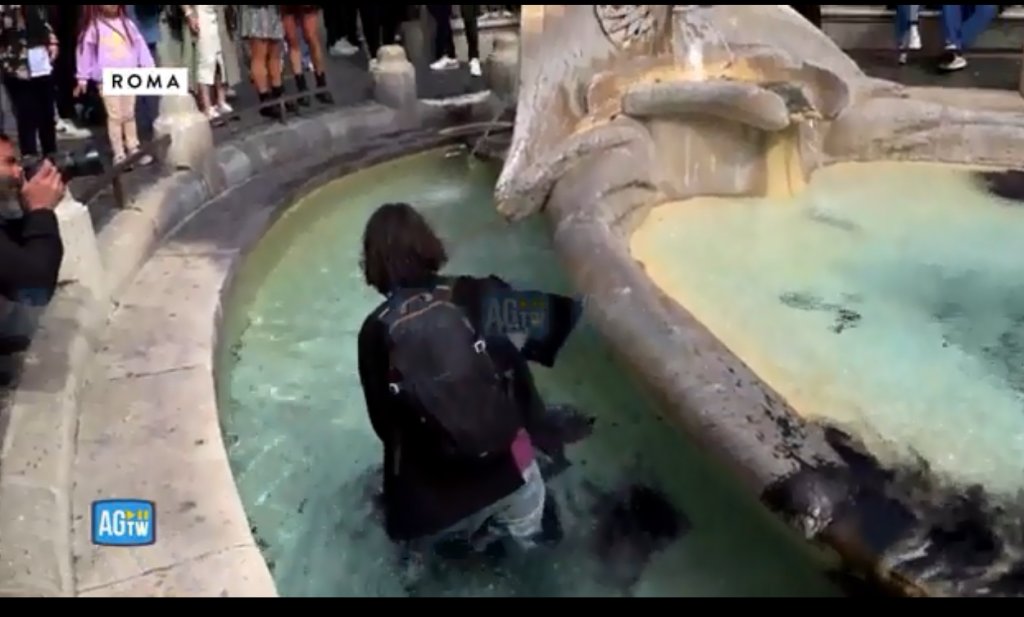 Ακτιβιστές έριξαν σήμερα το πρωί μαύρη μπογιά στο ιστορικό σιντριβάνι της πλατείας Πιάτσα ντι Σπάνια της Ρώμης.