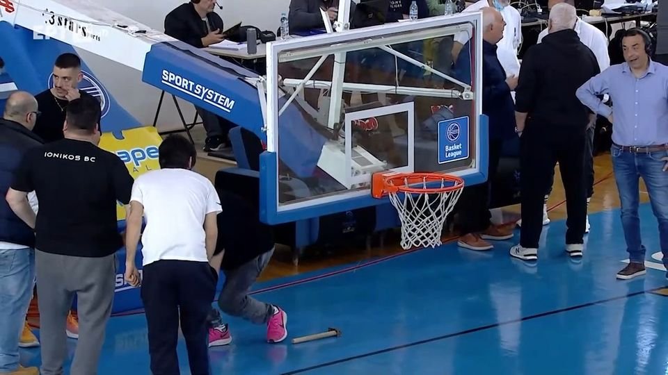 Ένα κάρφωμα στην προπόνηση στράβωσε τη μία μπασκέτα στο κλειστό της Νίκαιας και έτσι θα καθυστερήσει η έναρξη της αναμέτρησης του Ιωνικού με το Λαύριο