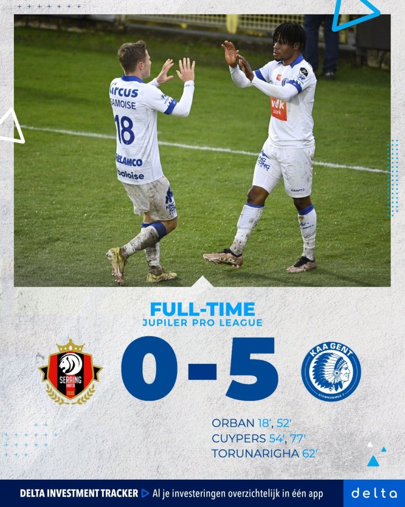 Η Γάνδη πέρασε σαν σίφουνας από την έδρα της Σερέν, τη διέλυσε 5-0 και δείχνει να κλειδώνει τα πλέι οφς.