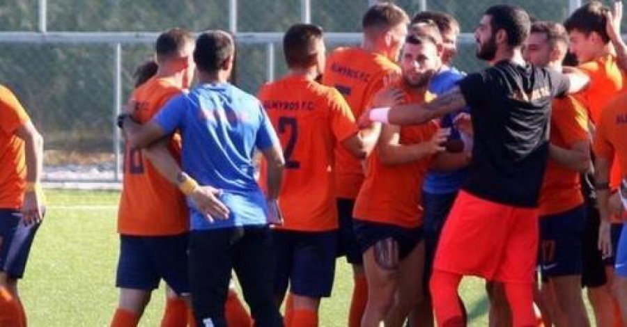 Η ομάδα του Άγιου Ιερόθεου, ξεκίνησε το παιχνίδι απέναντι στον Αλμυρό, με δέκα παίκτες και αυτό είχε ως αποτέλεσμα η ομάδα από το Γάζι, στο 4ο λεπτό να πάρει προβάδισμα στο σκορ με τον Αμαραντίδη.