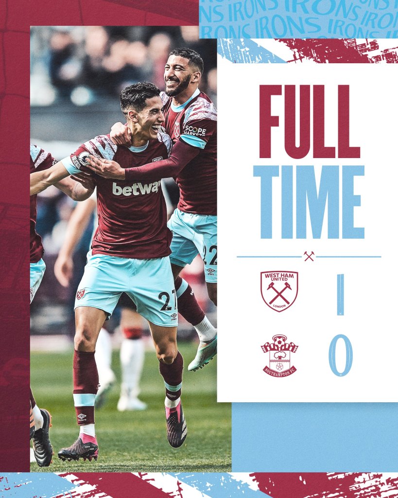 Νίκη-χρυσάφι για τη Γουέστ Χαμ που επικράτησε με 1-0 της Σαουθάμπτον και βγήκε από τη ζώνη του υποβιβασμού. Στον πάτο της βαθμολογίας παρέμειναν οι «Άγιοι».
