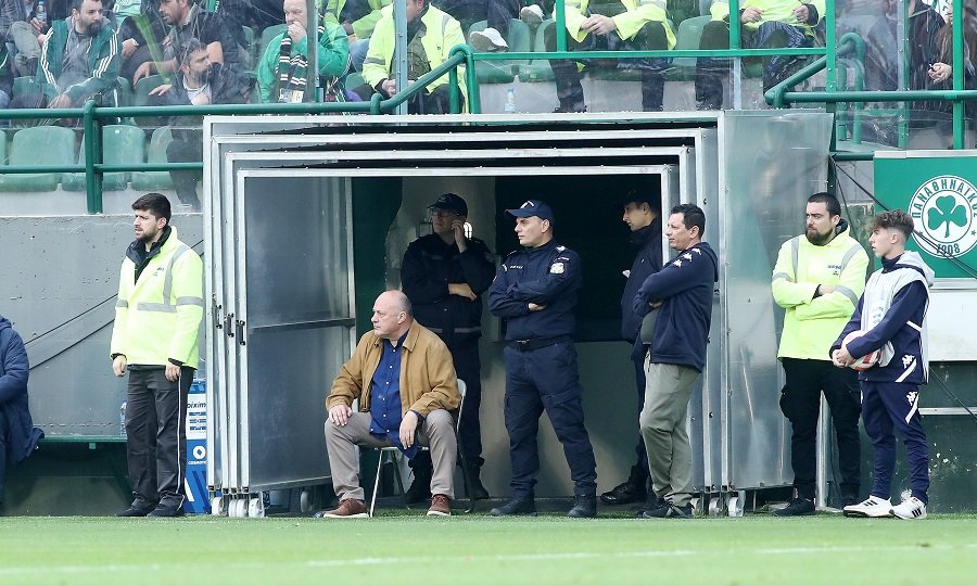 Ο Αχιλλέας Μπέος παρακολουθεί την αναμέτρηση του Βόλου με τον Παναθηναϊκό στη Λεωφόρο.Ο φακός απαθανάτισε τον ισχυρό άνδρα των Θεσσαλών να παρακολουθεί το παιχνίδι καθισμένος σε καρέκλα στην είσοδο της φυσούνας του γηπέδου.