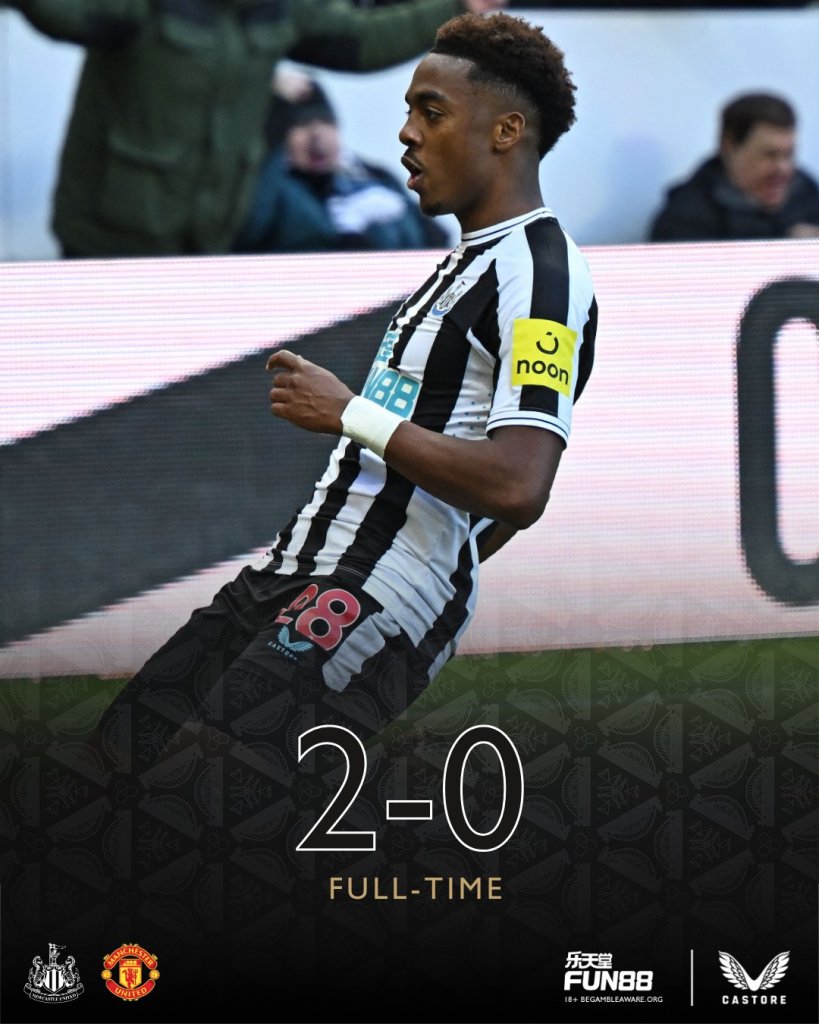 Τεράστια νίκη για την Νιούκαστλ. Οι «Καρακάξες» επικράτησαν με 2-0 της Μάντσεστερ Γιουνάιτεντ και έβαλαν φωτιά στην μάχη της τετράδας. Ισοβαθμούν στην τρίτη θέση οι δύο ομάδες, με την Τότεναμ να βρίσκεται στο -1.