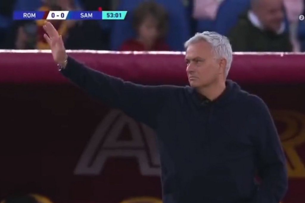 Αμέσως, ο Ζοζέ Μουρίνιο σηκώθηκε από τον πάγκο και έσπευσε να ζητήσει, από τους οπαδούς της Ρόμα, να σταματήσουν.