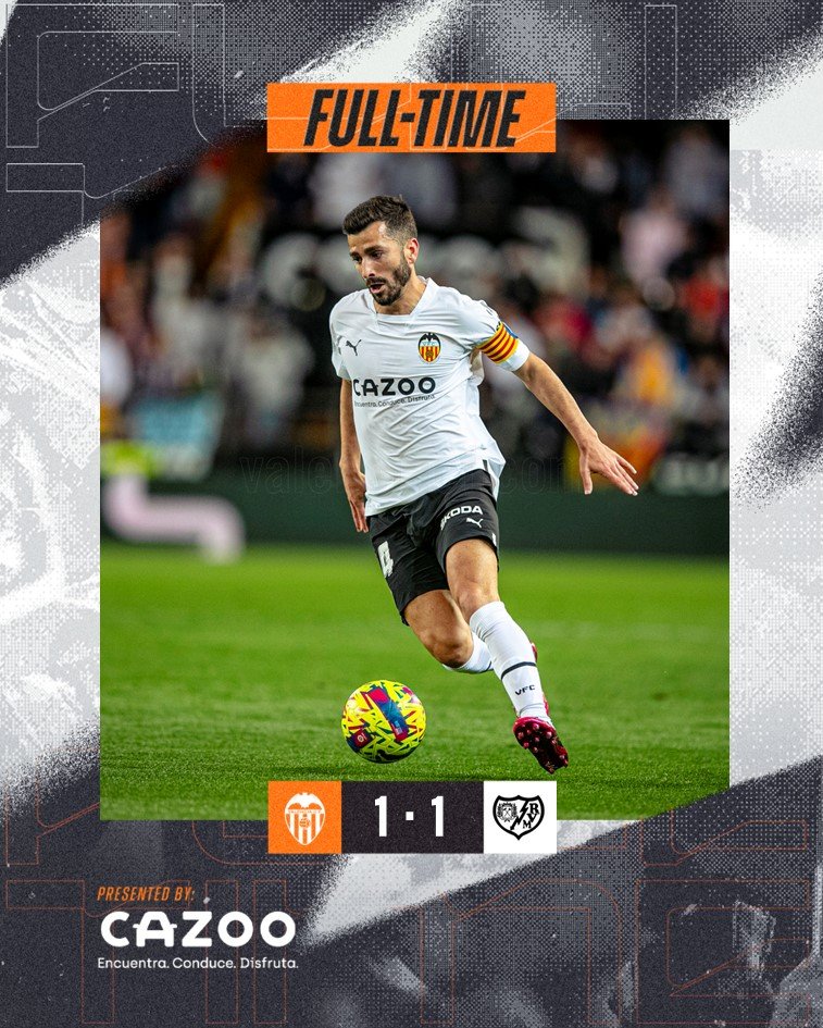 Έσωσε τον βαθμό στο τέλος η Βαλένθια. Οι «Νυχτερίδες» έμειναν στο 1-1 με τη Ράγιο Βαγιεκάνο για την 27η αγωνιστική του ισπανικού πρωταθλήματος και πήραν έναν σημαντικό βαθμό στην προσπάθεια που κάνουν για να αποφύγουν τον υποβιβασμό, καθώς ισοβαθμούν στην 17η θέση μαζί με Αλμερία και Χετάφε. Έχασαν έδαφος στην μάχη που δίνουν για ένα ευρωπαϊκό εισιτήριο οι φιλοξενούμενοι.