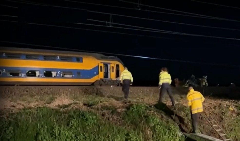 Το πρώτο βαγόνι του τρένου εκτροχιάστηκε κι είναι πεσμένο στο ένα πλευρό σε χωράφι, σύμφωνα με το ANP. Το δεύτερο βαγόνι έχει επίσης πέσει στο ένα πλευρό, ενώ στο τελευταίο βαγόνι εκδηλώθηκε φωτιά, κατά τις αρχικές πληροφορίες.