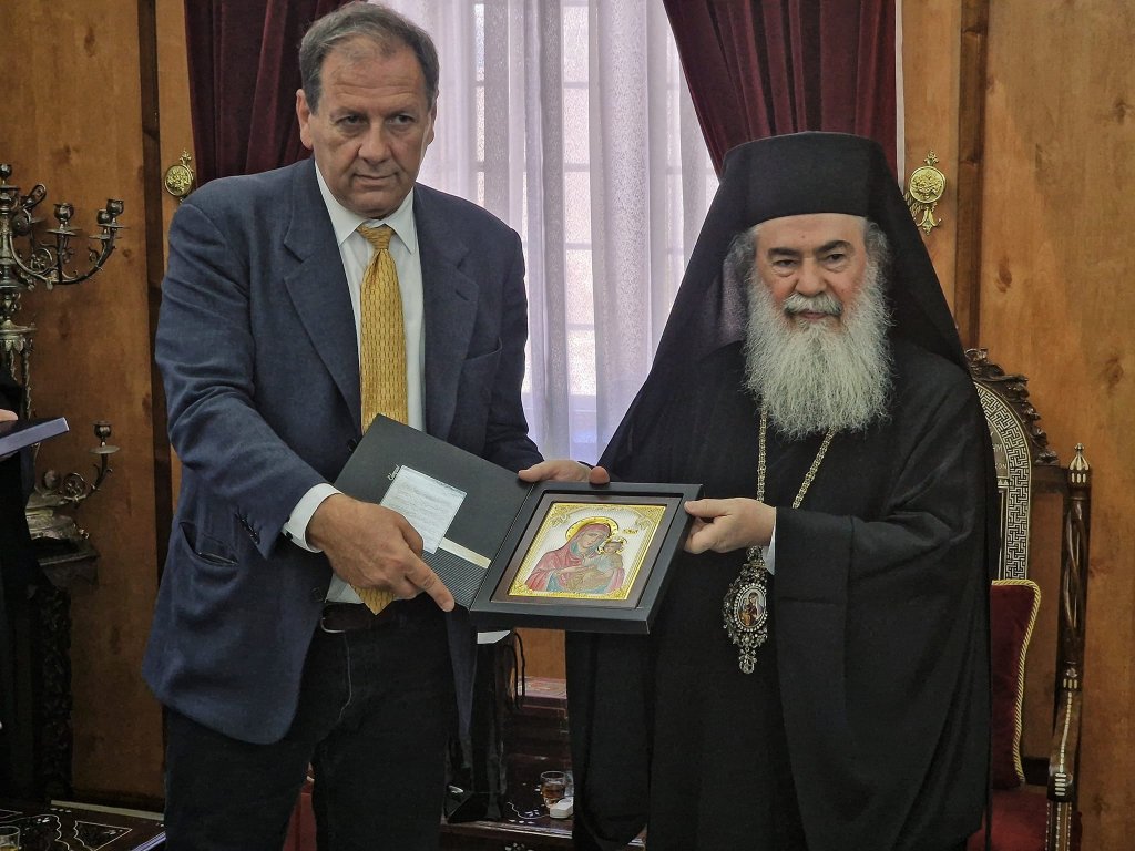 Το πρωί σήμερα, 4η Απριλίου, η Αυτού Θειοτάτη Μακαριότης, ο Πατριάρχης της Αγίας Πόλεως Ιερουσαλήμ και πάσης Παλαιστίνης, κ.κ. Θεόφιλος Γ΄, εδέχθη στο Πατριαρχείο Ιεροσολύμων, τον διοικητικό ηγέτη της ΑΕΚ BC, κ. Μάκη Αγγελόπουλο, τον οποίο συνόδευε αντιπροσωπεία της ΑΕΚ BC και ο Δήμαρχος Νέας Φιλαδέλφειας/Νέας Χαλκηδόνας κ. Γιάννης Βούρος.