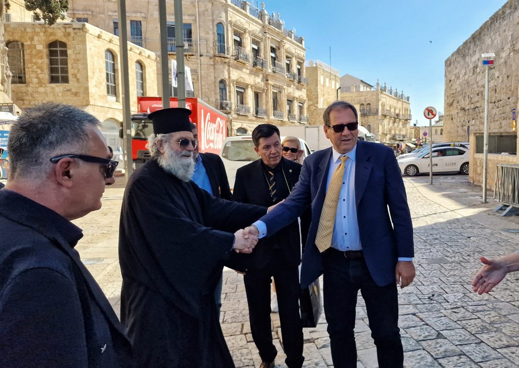 Την αντιπροσωπεία μας υπεδέχθη και ξενάγησε στους Αγίους Τόπους, για ακόμη μία χρονιά, ο Πανιερώτατος Μητροπολίτης Καπιτωλιάδος κ. Ησύχιο.