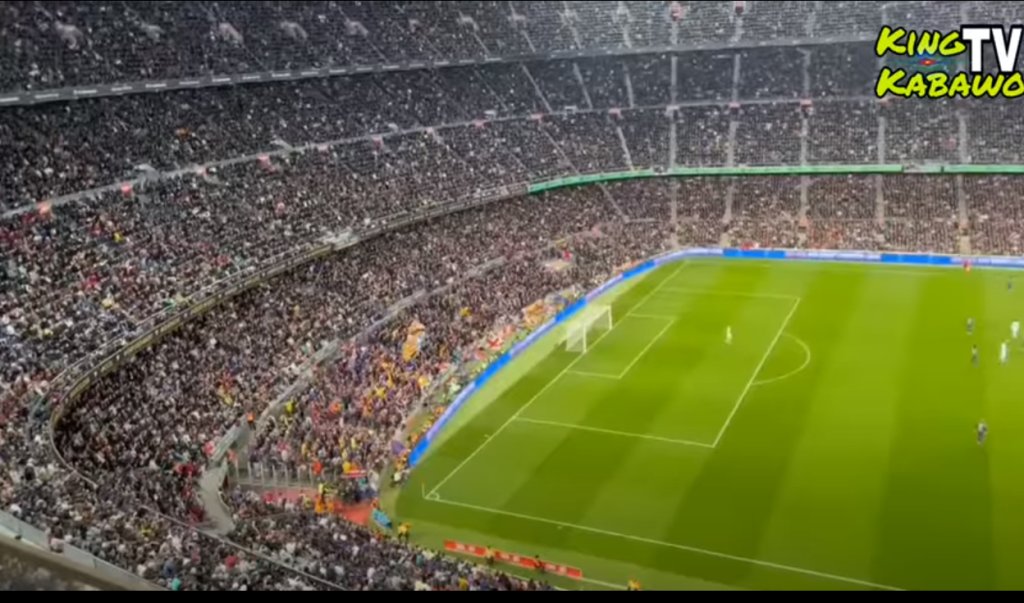 Barcelona fans chanting "Messi, Messi, Messi" at the ten-minute mark