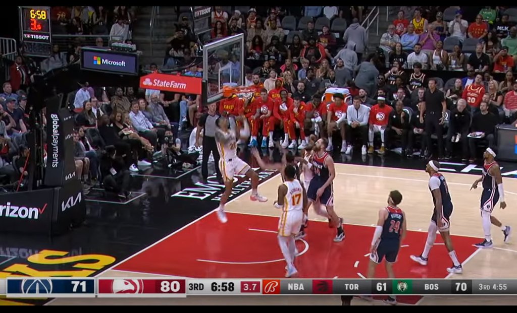 Ο φόργουορντ των Χοκς καταλαμβάνει δυο θέσεις, με κορυφαία στιγμή το ανάποδο κάρφωμα, που ήταν και η καλύτερη φάση των αγώνων, που έγιναν τα ξημερώματα