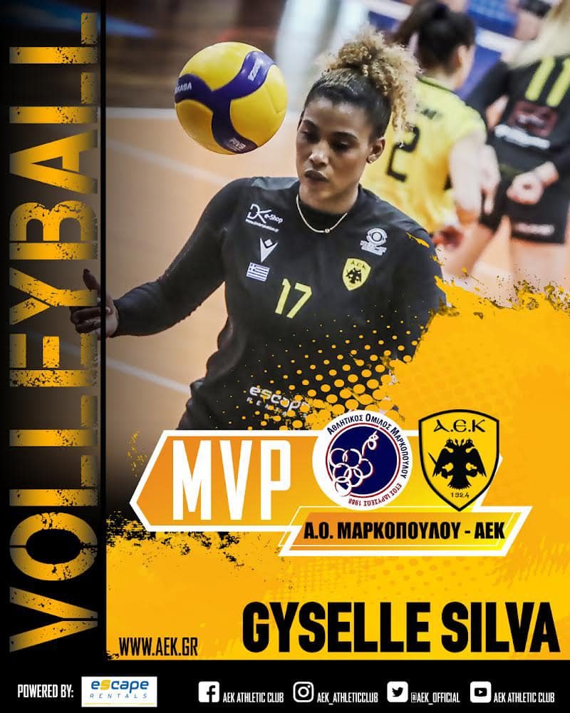 Η γυναικεία ομάδα βόλεϊ της ΑΕΚ πήρε άνετο διπλό επί του Μαρκόπουλου και έκανε το πρώτο βήμα στα προημιτελικά των πλέι οφ του Πρωταθλήματος της Volleyleague. Σε αυτό το παιχνίδι η Γκιζέλ Σίλβα πέτυχε 13 πόντους (10/23 επ., 3 μπλοκ) και μετά το τέλος αναδείχθηκε «Escape Car Rentals» MVP της αναμέτρησης.