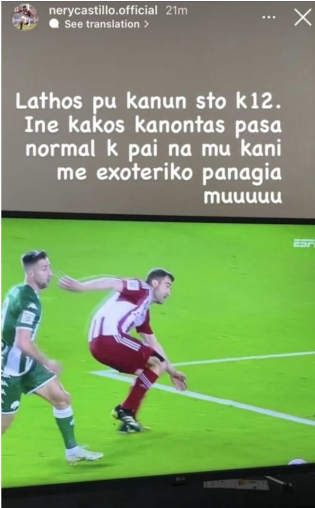 Ο Νέρι Καστίγιο σχολίασε μέσω social media το λάθος του Σωκράτη Παπασταθόπουλου στο πρώτο γκολ του Παναθηναϊκού επί του Ολυμπιακού.