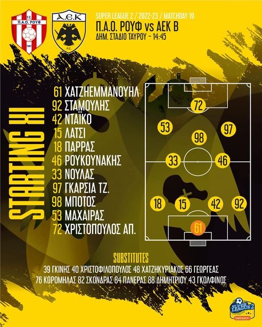 Έγινε γνωστή πριν από λίγο η 11άδα της ΑΕΚ Β’ για το εκτός έδρας ματς με το ΠΑΟ Ρουφ(14:45).