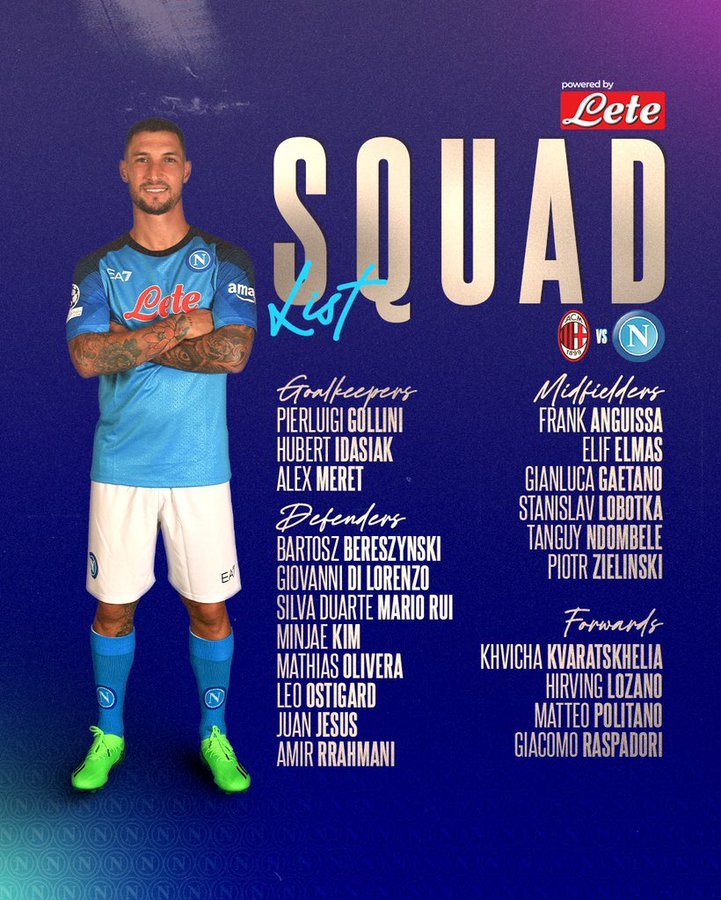 Επίσης, εκτός αποστολής έμεινε και ο Τζιοβάνι Σιμεόνε, με το μοναδικό θετικό νέο για την ομάδα του ιταλικού νότου να είναι ότι συμπεριλήφθηκε κανονικά ο Τζιακόμο Ραζπαντόρι.
