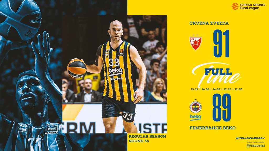 Η Φενέρμπαχτσε έχασε το τελευταίο σουτ της κανονικής διάρκειας και της παράτασης (ο Μάρκο Γκούντουριτς το πρώτο, ο Νικ Καλάθης το δεύτερο) κι ο Ερυθρός Αστέρας άδραξε την ευκαιρία για να επικρατήσει στην παράταση (91-89), κλείνοντας με χαμόγελο τη φετινή σεζόν στην EuroLeague.