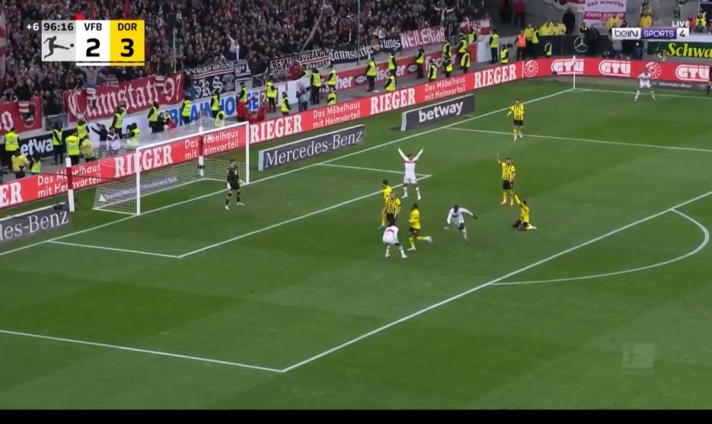 Η Μπορούσια Ντόρτμουντ έπαιζε με παίκτη παραπάνω από το 39', προηγήθηκε 2-0 στο 33', είχε μεγάλη ευκαιρία να βρεθεί στην κορυφή, αλλά, την πέταξε στα σκουπίδια. Σε ένα συναρπαστικό παιχνίδι, στην "Mercedes Benz Arena", η Ντόρτμουντ ισοφαρίστηκε, 2-2, προηγήθηκε στο 90'+3', αλλά, η μαχητική Στουτγάρδη απάντησε, ξανά, και, με γκολ στο 90'+7', για το 3-3, πήρε υπερπολύτιμο βαθμό.