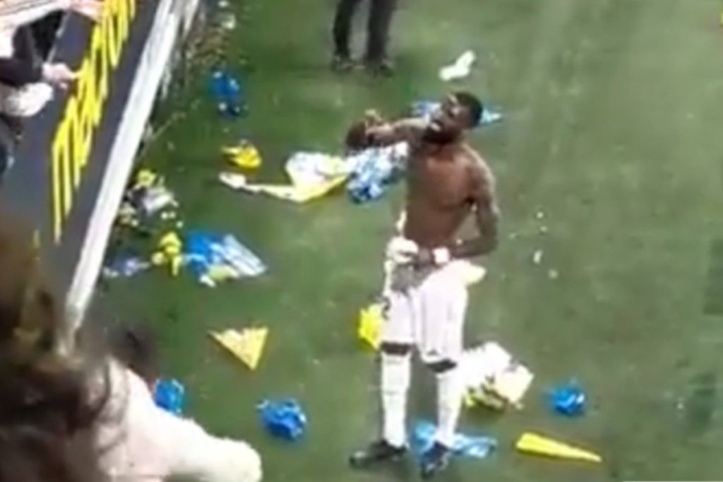 Τη στιγμή που πλησίασε δέχθηκε υβριστικά σχόλια από οπαδούς των γηπεδούχων, ενώ ένας εξ αυτών τον αποκάλεσε "μαύρε μπ@στ@ρδ@".