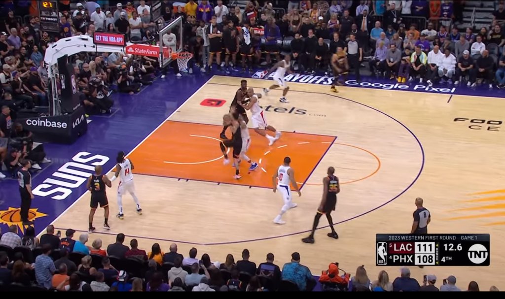 Ο 34χρονος γκαρντ των Κλίπερς μπλόκαρε το λέι απ του Μπούκερ, στα 12.5 δευτερόλεπτα, κέρδισε και την κατοχή, στην κορυφαία φάση των αγώνων, που έγιναν Κυριακή βράδυ