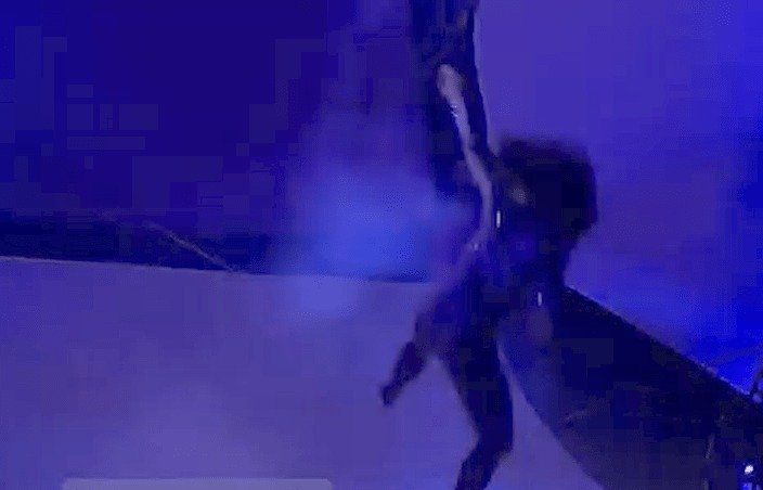 Η ακροβάτισσα ήταν στον αέρα για περίπου 5 λεπτά όταν το πόδι της φάνηκε να γλιστράει, με αποτέλεσμα να πέσει ανάμεσα από δύο ηχεία και να χτυπήσει. Δεν είναι σαφές εάν η ακροβάτισσα τραυματίστηκε ενώ ήταν στον αέρα ή απλά έχασε την ισορροπία της και έπεσε.