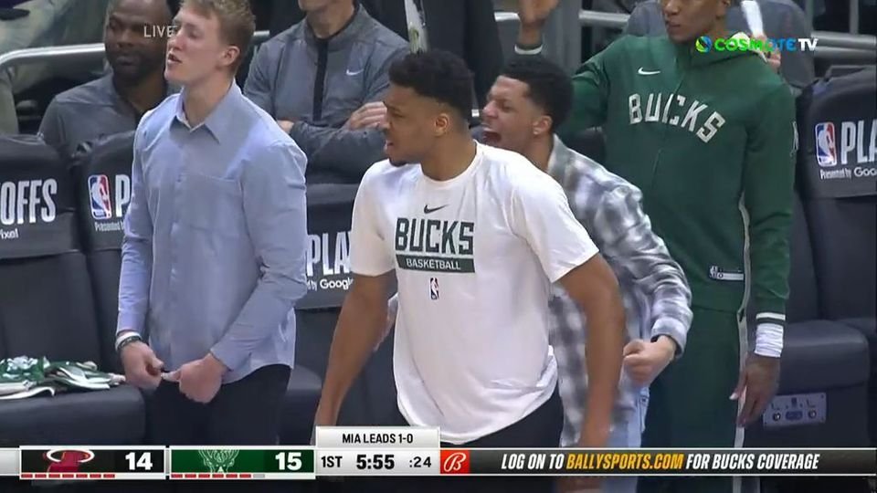 Μπακς-Χιτ: Η παθιασμένη έκρηξη του Γιάννη σε τρίποντο του Άλεν (VIDEO)