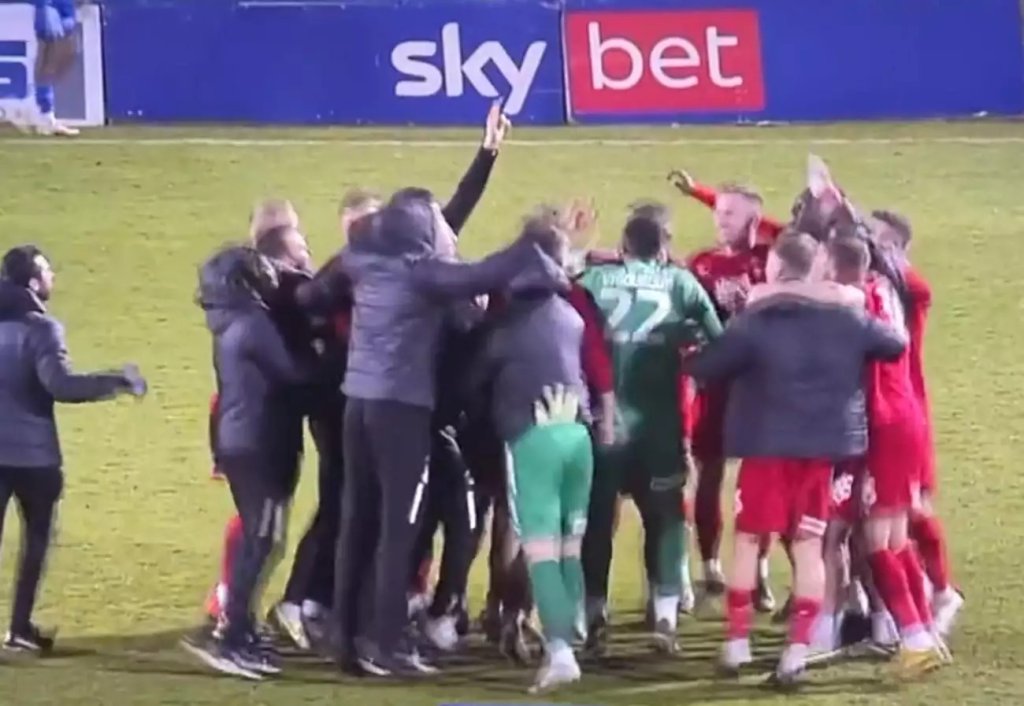 Οι ποδοσφαιριστές της ομάδας ξέσπασαν σε πανηγυρισμούς και το απίθανο είναι πως πανηγύριζαν, ενώ το παιχνίδι ήταν σε εξέλιξη.