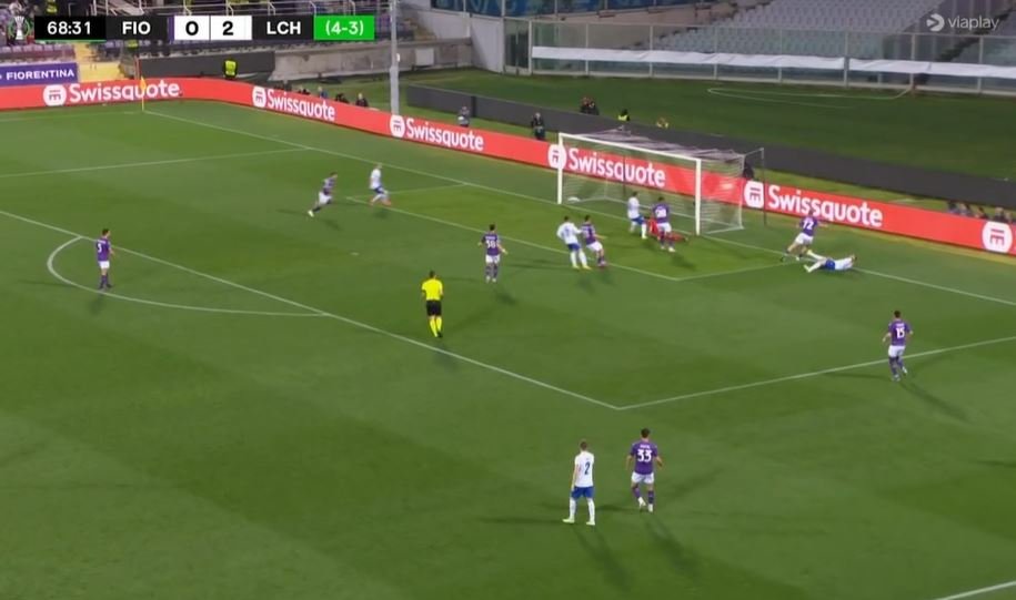 Στο 69’ από εκτέλεση πλαγίου ο Κάρλστρομ έβαλε πλάτη τον Μπαράκ και σέντραρε από δεξιά, με τον Σόμπιεχ να πλασάρει από κοντά για το 0-3!