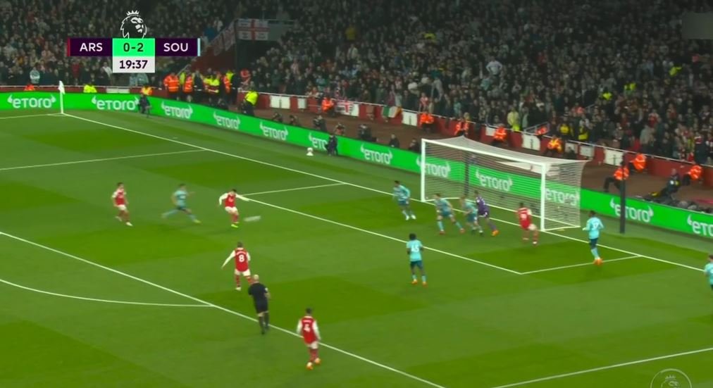 Στο 20’ ο Σακά σέντραρε από δεξιά και ο Μαρτινέλι με όμορφο γυριστό σουτ από το πέναλτι μείωσε σε 1-2.