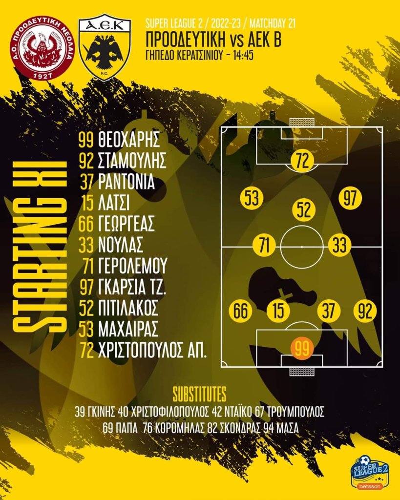 Το δίδυμο των κεντρικών αμυντικών αποτελείται από τους Λάτσι και Ραντόνια, ενώ μπροστά τους θα παίζουν οι Νουλας, Γερολέμου. Σε ρόλο επιθετικού μέσου ο Πιτιλακος.