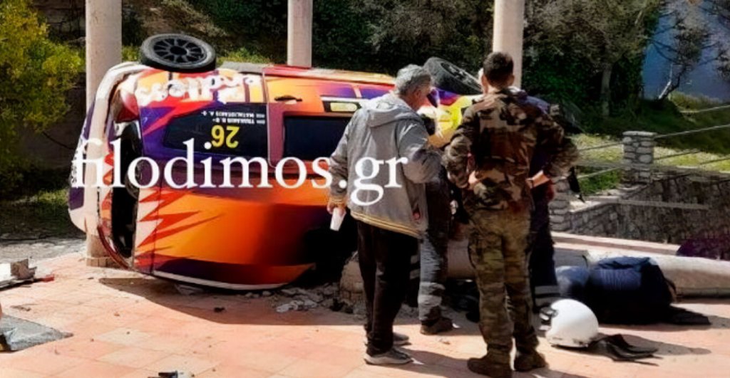 Συγκεκριμένα, ένα αγωνιστικό όχημα ξέφυγε από την πορεία του στο ύψος του χωριού Αχλαδιά, βγήκε εκτός δρόμου και έπεσε από μεγάλο ύψος, για να καταλήξει στην αυλή ενός σπιτιού.