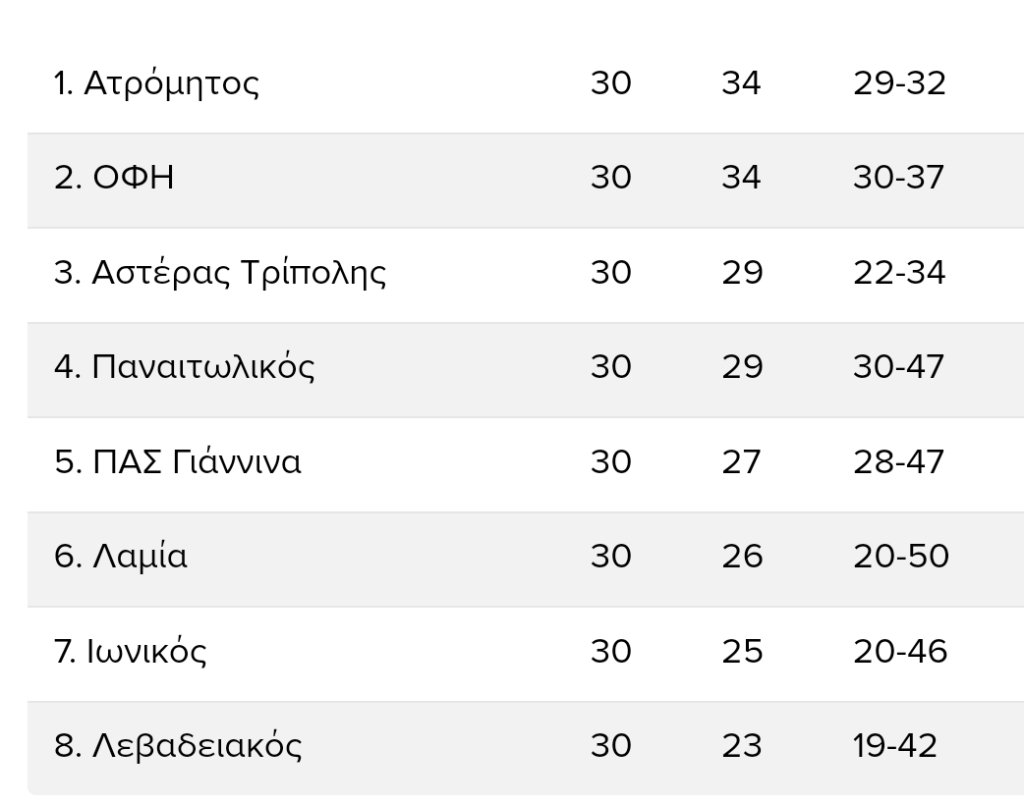 ΛΕΒΑΔΕΙΑΚΟΣ - ΙΩΝΙΚΟΣ 2-2 (50' Γερεμέγεφ, 56' Μεχία - 26' Φαντιγκά, 87' Τσιγκρίνσκι)