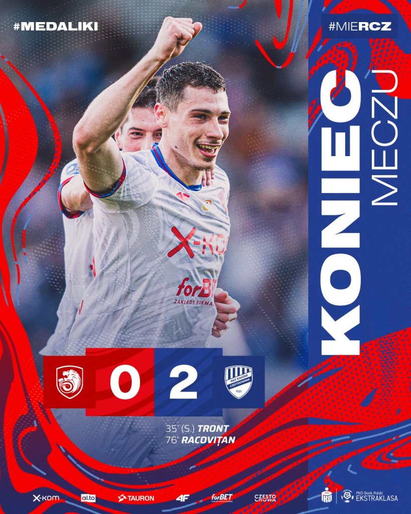 Μια ανάσα από το πρώτο πρωτάθλημα στην ιστορία της βρίσκεται η Ρακόβ του Στράτου Σβάρνα. Η ομάδα του Μάρεκ Παπσούν κέρδισε με 2-0 στην έδρα της Μίεντζ και βρέθηκε στο +11 από τη Λέγκια η οποία γνώρισε οδυνηρή ήττα χθες με 1-0 από τη Βάρτα.
