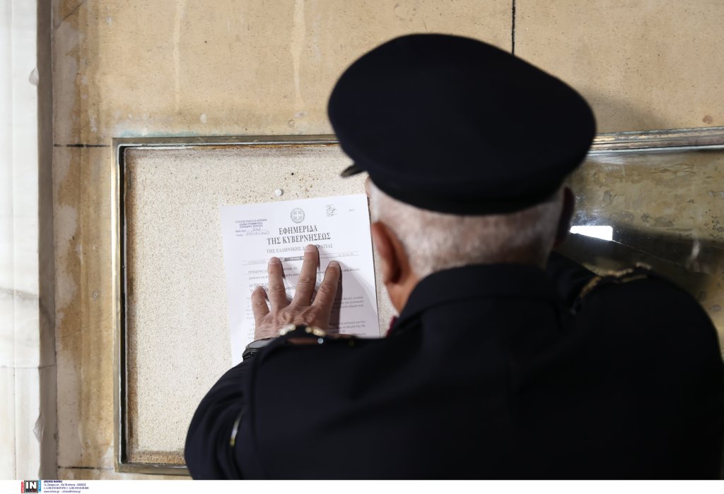 Το Προεδρικό Διάταγμα θυροκολλήθηκε στο περιστύλιο της Βουλής. Με τη θυροκόλλησή του, ξεκινά ευθύς αμέσως η προεκλογική περίοδος.
