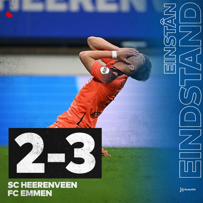 «Διπλό» παραμονής για την Έμεν, η οποία πέρασε με 3-2 από την έδρα της Χέρενφεεν και ανέβηκε στην 15η θέση του βαθμολογικού πίνακα. Μεγάλος πρωταγωνιστής της αναμέτρησης ο Τερ Χάαρ Ρομένι που πέτυχε χατ τρικ.