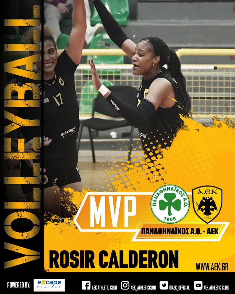 Η γυναικεία ομάδα βόλεϊ της ΑΕΚ έκανε το 1-1 στη σειρά των ημιτελικών της Volleyleague γυναικών, μετά το διπλό με 1-3 σετ επί του Παναθηναϊκού στο κλειστό του Αγίου Θωμά. Σε αυτό το παιχνίδι η Ένωση είχε σε μεγάλη μέρα την Ροσίρ Καλντερόν, η οποία μετά το τέλος της αναμέτρησης κέρδισε και τον τίτλο «Escape Car Rentals» MVP.