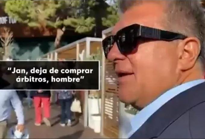 Σε τουρνουά τένις, στη Βαρκελώνη, βρέθηκε το Σάββατο ο Ζοάν Λαπόρτα, όταν ένας οπαδός τον πλησίασε και του είπε την ατάκα "Σταμάτα να εξαγοράζεις διαιτητές".