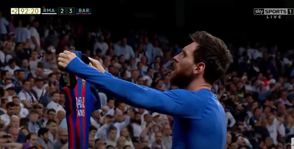 Ωστόσο, στο εν λόγω ματς ο Μέσι μας πρόσφερε μία από τις πιο χαρακτηριστικές στιγμές στην ιστορία του ποδοσφαίρου. Σκόραρε, στάθηκε μπροστά στους οπαδούς της Ρεάλ Μαδρίτης, έβγαλε τη φανέλα του και την έδειξε στο κοινό που παρακολουθούσε… ξενερωμένο.