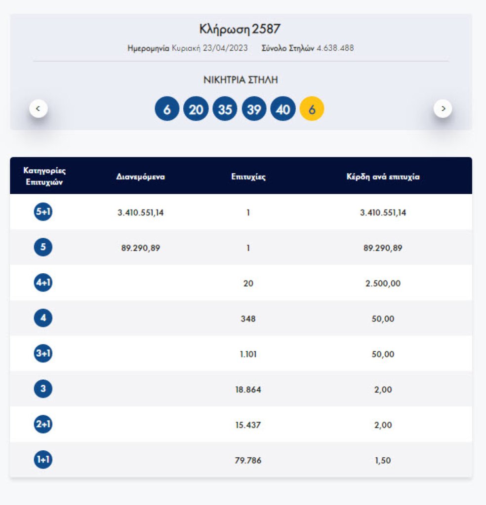 Επίσης, ένας ακόμα που μάντεψε τα 5 νούμερα χωρίς το Τζόκερ κέρδισε 89,290 ευρώ.