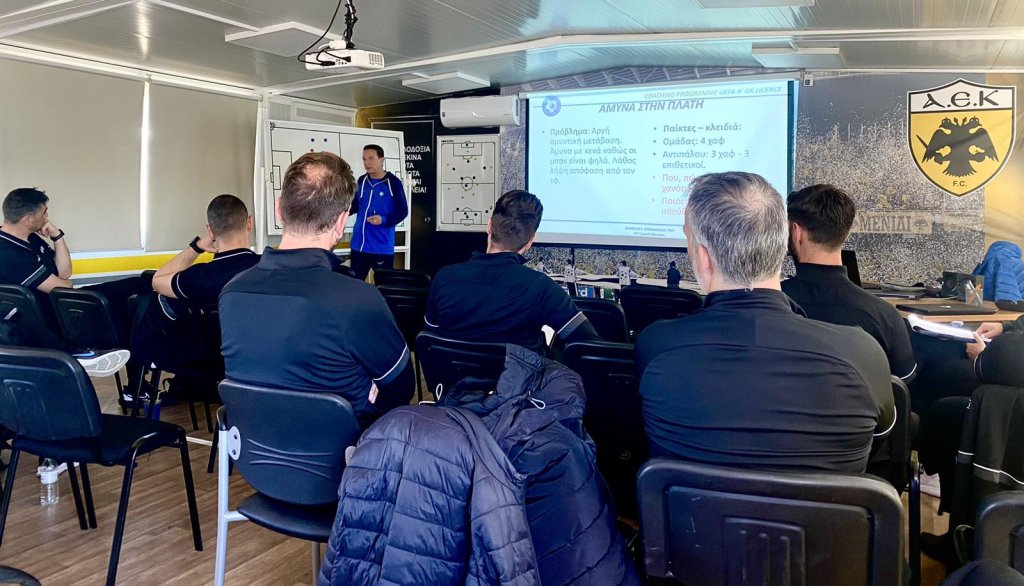 Η Ακαδημία της ΠΑΕ ΑΕΚ φιλοξένησε στις εγκαταστάσεις της στα Σπάτα το τριήμερο 19-21/4/2023 τη 2η φάση της Σχολής UEFA A-GK, το οποίο αποτελεί το ανώτατο δίπλωμα Προπονητών Τερματοφυλάκων στην Ευρώπη. Η ΑΕΚ διέθεσε τους εσωτερικούς χώρους και το γήπεδο του προπονητηρίου για τα θεωρητικά και πρακτικά μαθήματα αντίστοιχα, ενώ διέθεσε και τα τμήματα Κ19, Κ17 και Κ15, ώστε να επιτευχθεί το καλύτερο δυνατό επίπεδο εκπαίδευσης, σύμφωνα με τις οδηγίες της UEFA.