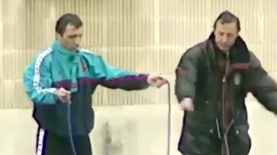Ο Κρόιφ στα 48 του τότε, ο Κρίστο Στόιτσκοφ στα 29 του. Και ο μεγάλος Ολλανδός, προπονητής της Μπάρτσα εκείνη την εποχή, προσπαθεί να μάθει... σχοινάκι στον σπουδαίο Βούλγαρο παίκτη του.