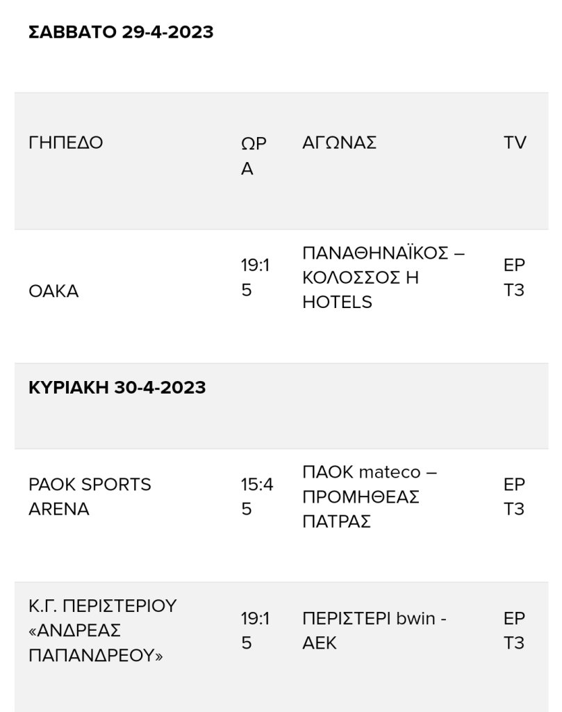 Σε περίπτωση που χρειαστεί και τρίτο παιχνίδι σε αυτές τις σειρές, ο ΕΣΑΚΕ ανακοίνωσε το πρόγραμμα, το οποίο έχει :