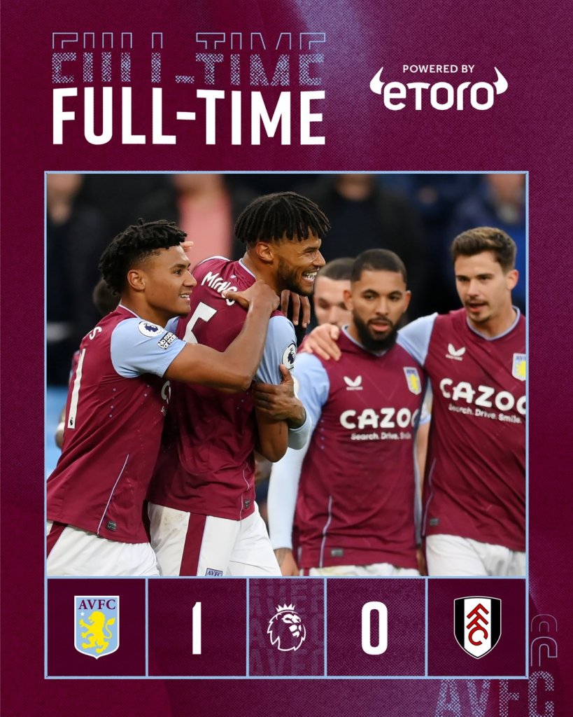 Την εντυπωσιακή της πορεία συνεχίζει η Άστον Βίλα. Οι «Χωριάτες» κέρδισαν με 1-0 την Φούλαμ στο «Βίλα Παρκ» και ανέβηκαν στην πέμπτη θέση του βαθμολογικού πίνακα με 54 βαθμούς, έχοντας βέβαια παιχνίδι περισσότερο από την 6η Τότεναμ που βρίσκεται στους 53. Παρέμειναν στην 9η θέση οι φιλοξενούμενοι που βλέπουν την έξοδο στην Ευρώπη να δυσκολεύει αρκετά.