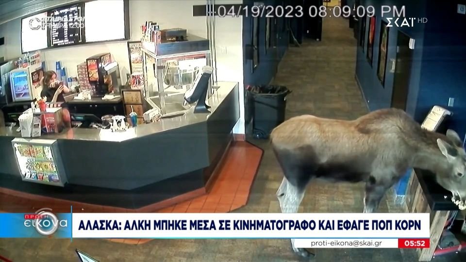 Αλάσκα: Άλκη μπήκε μέσα σε κινηματογράφο και έφαγε ποπ κορν (VIDEO)