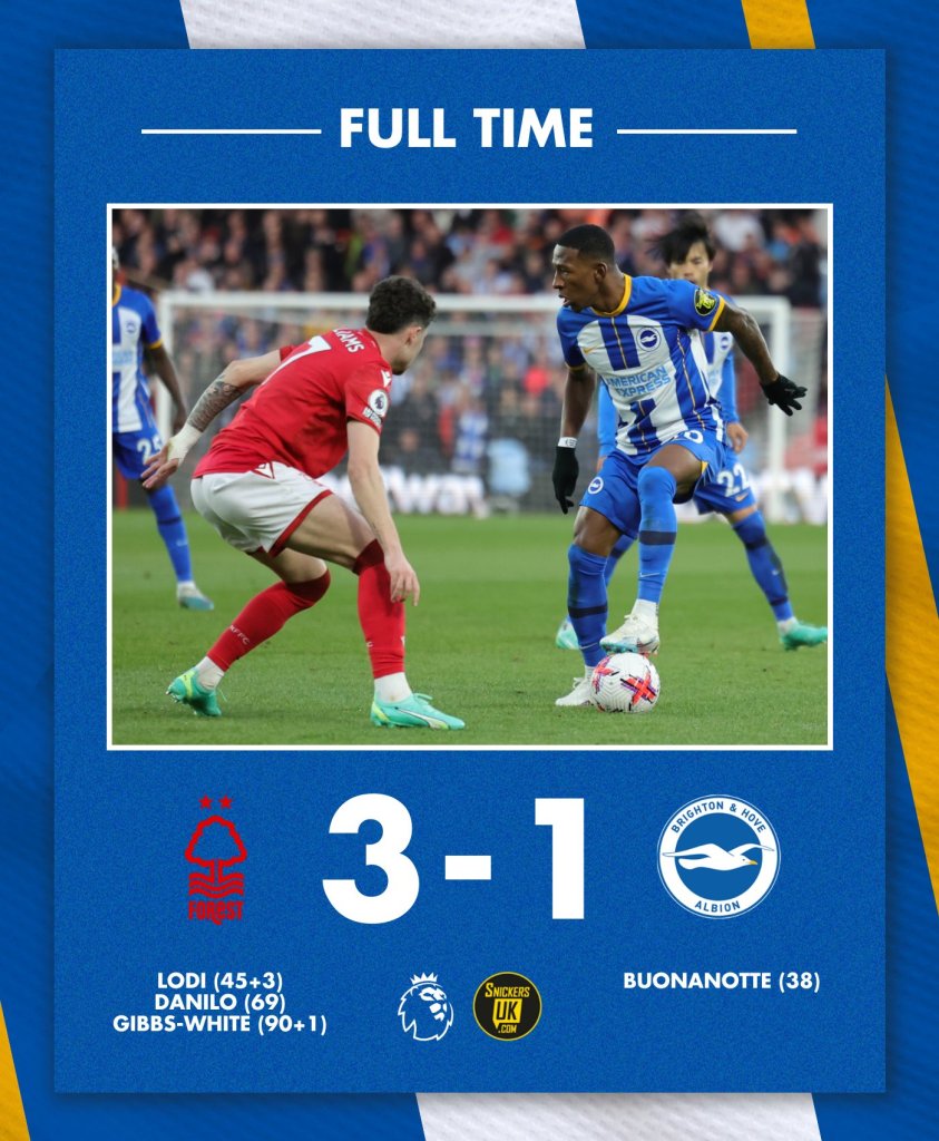 Επιτέλους νίκη για τη Νότιγχαμ Φόρεστ που κέρδισε με 3-1 την Μπράιτον κι επέστρεψε στα τρίποντα μετά από τις 5 Φεβρουαρίου.