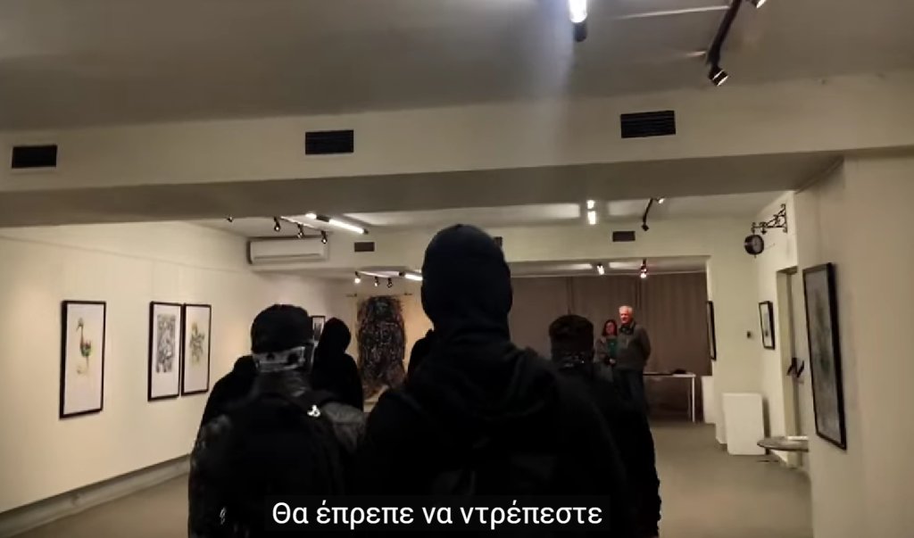 Συγκεκριμένα, σύμφωνα με το thestival.gr, τα άτομα, φορώντας κουκούλες, μπούκαραν στην αίθουσα τέχνης Remezzo στην Αρετσού, εκεί όπου γινόταν η έκθεση ζωγραφικής και ζήτησαν από τον καλλιτέχνη Sergej Andreevski να κατεβάσει τα έργα του.