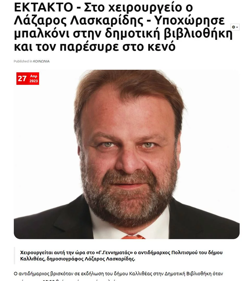 Το δημοσίευμα του kallitheaonline για το ατύχημα του Λάζαρου Λασκαρίδη