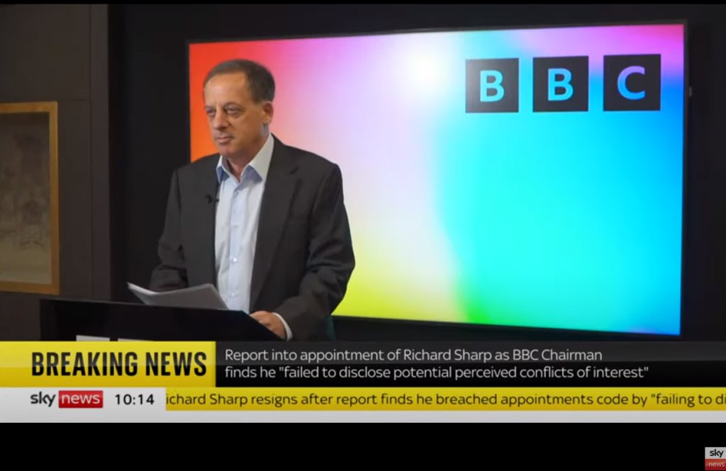 Η έρευνα, που ξεκίνησε από τη αρμόδια ρυθμιστική αρχή της χώρας για τους διορισμούς σε δημόσια αξιώματα, εξέτασε τον τρόπο με τον οποίο ο Σαρπ είχε επιλεγεί το 2021 από την κυβέρνηση προκειμένου να ηγηθεί του βρετανικού δημόσιου ραδιοτηλεοπτικού δικτύου.