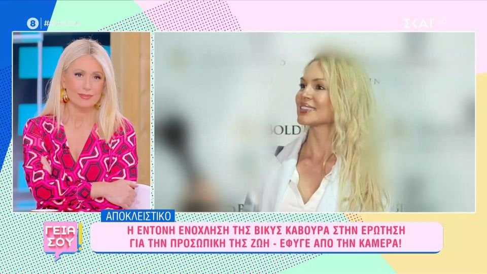 Η κάμερα της εκπομπής «Γεια σου» του ΣΚΑΙ συνάντησε τη Βίκυ Κάβουρα σε μία βραδινή της έξοδο. Κατά τη διάρκεια της συνέντευξης, ο δημοσιογράφος τη ρώτησε για την προσωπική της ζωή, προκαλώντας την έντονη δυσαρέσκειά της.