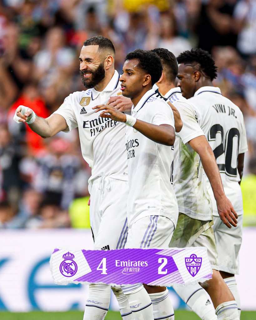 Στο 41’ οι «Μερένχες» κέρδισαν πέναλτι, με τον Μπενζεμά να αναλαμβάνει την εκτέλεση και να γράφει το 3-0, κάνοντας με αυτόν τον τρόπο ακόμα ένα χατ-τρικ την φετινή σεζόν, ενώ στο 45+1’ η Αλμερία μείωσε σε 3-1 με τον Λαζάρο.