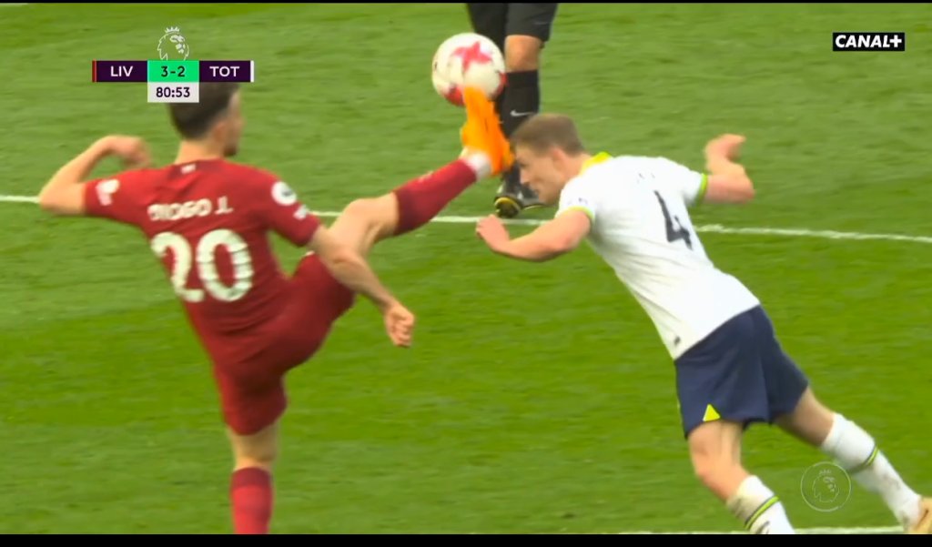 Στο 80ο λεπτό του Λίβερπουλ-Τότεναμ, οι φιλοξενούμενοι διαμαρτυρήθηκαν, έντονα, στον διαιτητή Τίρνεϊ για την απόφασή του να δείξει κίτρινη κάρτα, αντί για κόκκινη, στον Ντιόγκο Ζότα, σε διεκδίκηση της μπάλας με τον Σκιπ.